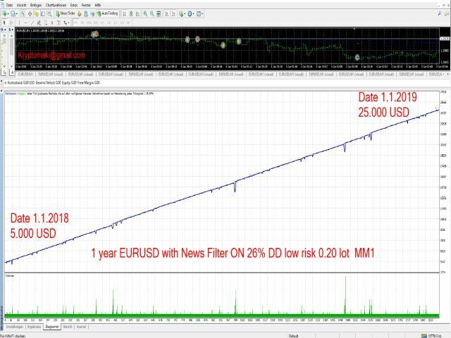 Time unit: 1 min MM Type 1 Martingale MM Type 2 Fixlot Minimum leverage: 1: 500 and or 1: 1000 | The EA is programmed for EURUSD, but can also be used with other pairs.